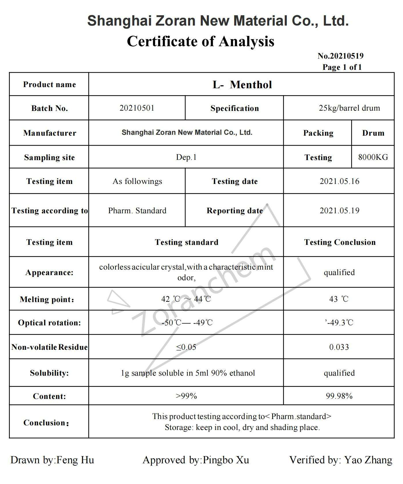 Bulk Wholesale Menthol Laevo High Quality CAS 2216-51-5 L-Menthol